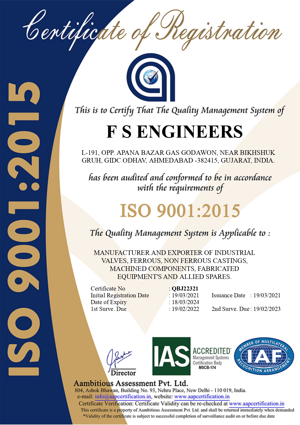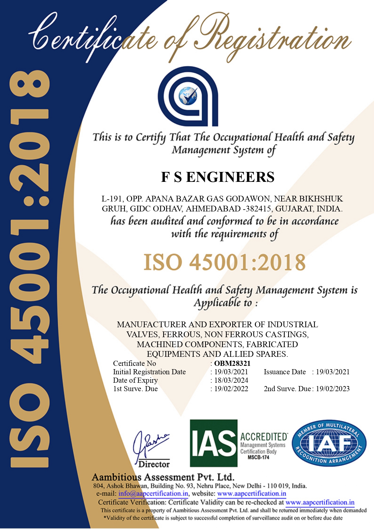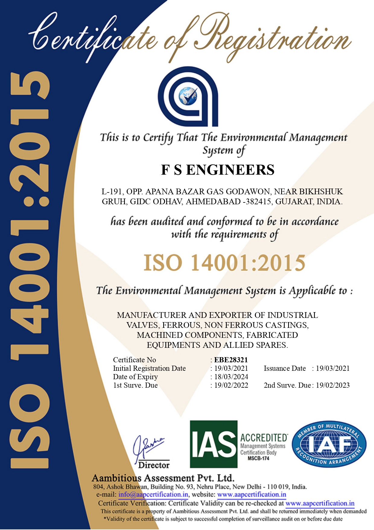 2. ISO 9001:2015 – Environment Management SystemIn line with quality of product, at F.S. Engineers we also takes care of environmental safety. We tries to avoid or minimize any kind of harm that is created to environment through our activities and operations.